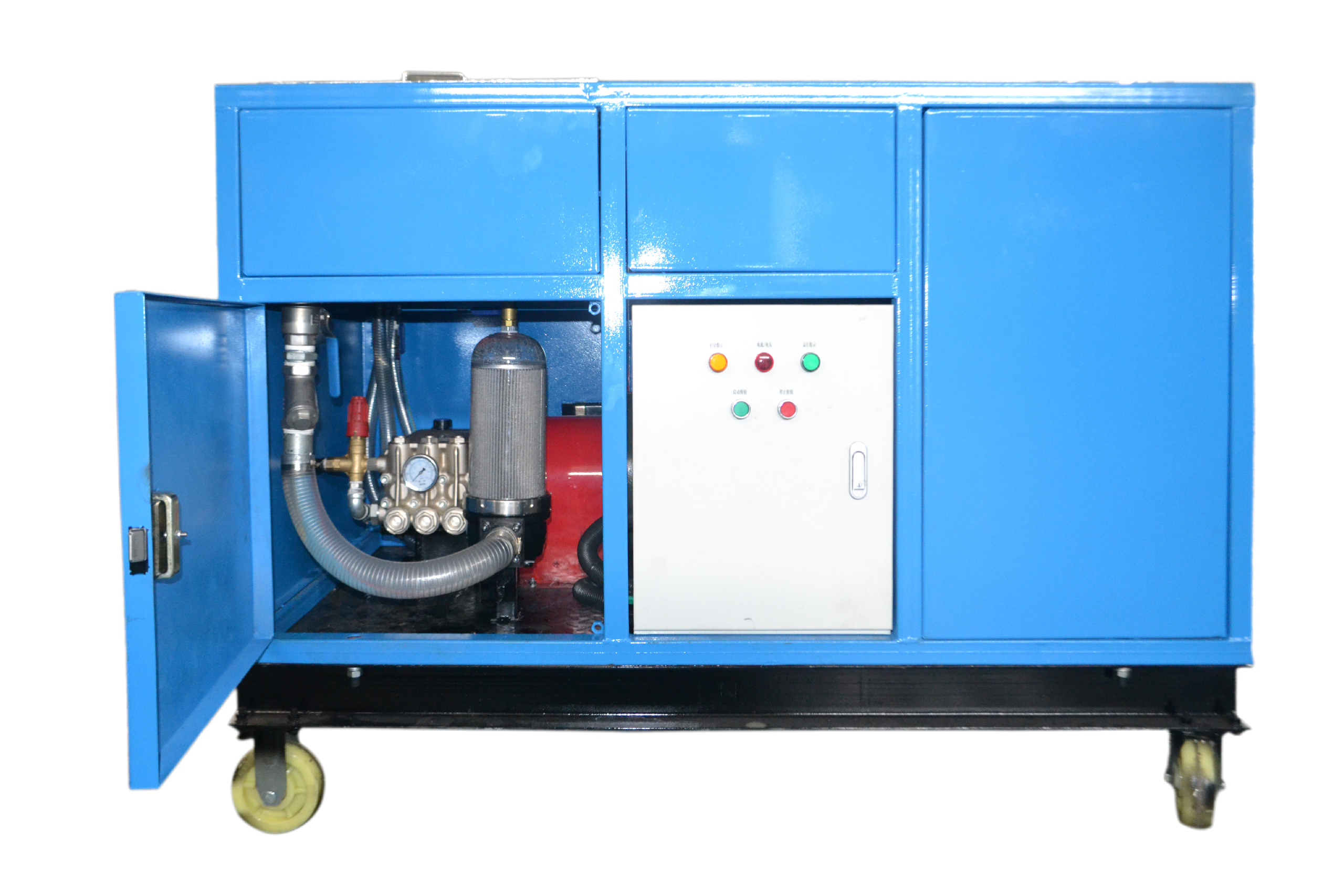 The high-pressure pump uses German KAMAT technology for high-flow rates. It boasts both high flow and high pressure. It uses pure high-pressure water for physical cleaning, eliminating the need for any chemicals and creating zero pollution. It is a green, environmentally friendly, high-tech product promoted by the government.